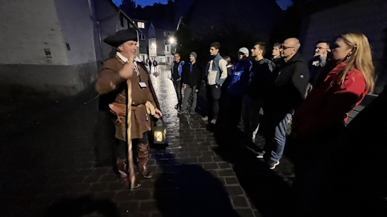 Kulturell derartig gestärkt ging es zum Grillplatz der Jugendherberge zurück und später leiblich gestärkt zur Nachtwächterführung. Zu diesem Zeitpunkt war nach vielen zu Fuß geleisteten Bewegungseinheiten klar, dass auch dieses Wochenende einen besonderen Bewegungsschwerpunkt erhalten würde. Während der Nachtwächterführung wurde für ein paar Stunden "geliehener" Zeit einmal Raum und Zeit vergessen und wir wurden in eine zugleich ferne und nahe Vergangenheit entführt. Es war insgesamt auch sehr stimmungsvoll, da alles in der Dunkelheit stattfand, wir die historischen Orte mit Fackeln "begehen" durften, was unserer Phantasie freien Lauf ermöglichte.